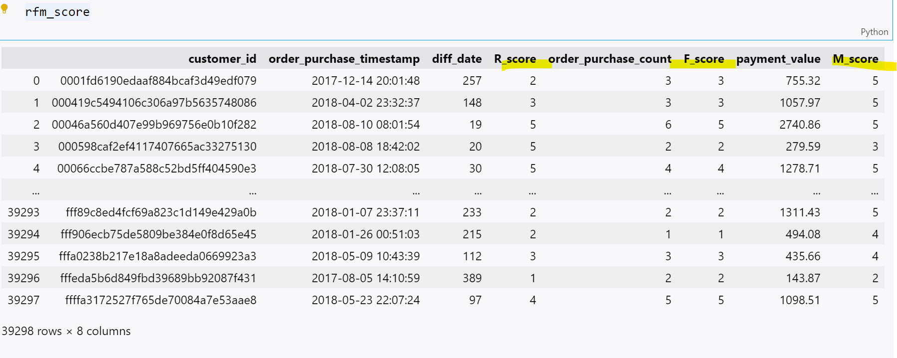 # rfm_score ํฉ์น๊ธฐ