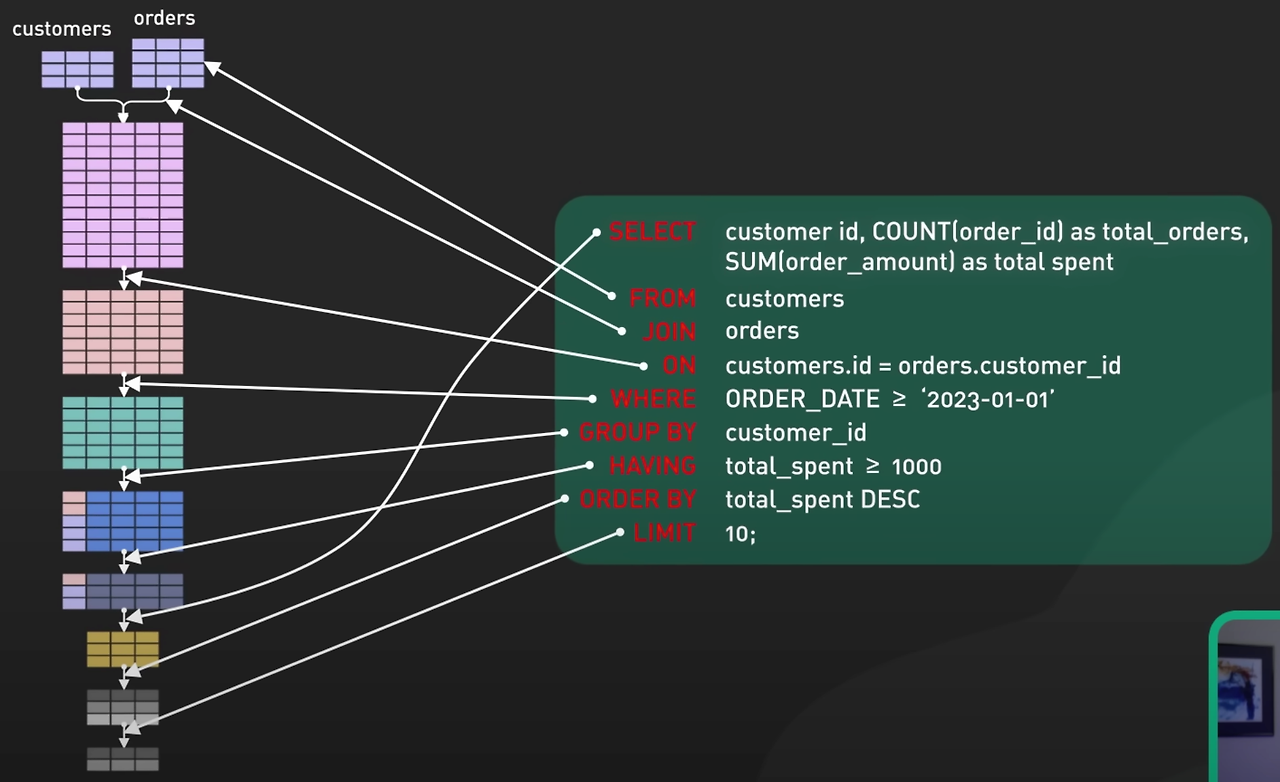 ์ฟผ๋ฆฌ์ ์คํ ์์๋ฅผ ์๋ ๊ฒ์ ์ค์ํ๋ค. ์คํ์์๋ฅผ ๋ชจ๋ฅด๋ฉด ์ฟผ๋ฆฌ๋ฅผ ์ ๋๋ก ์์ฑํ๊ธฐ ์ด๋ ต๋ค. ์๋ฅผ ๋ค์ด ๋ณด์.