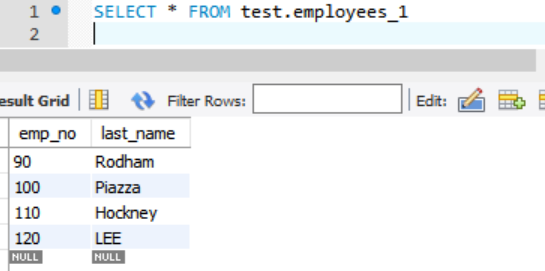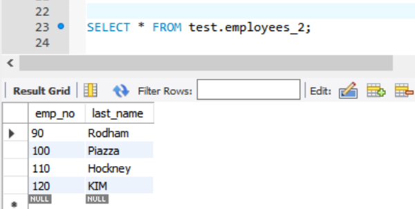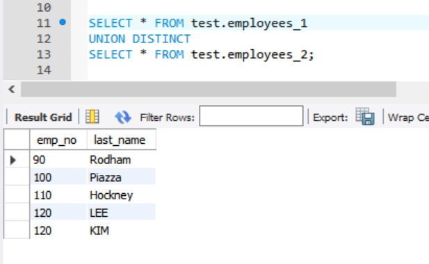 employee_1 테이블과 employee_2 테이블 UNION 결과값