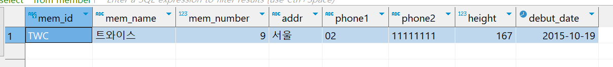 select * from member;