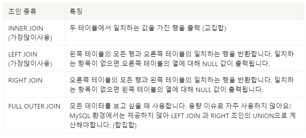 - ๊ฐ ํ ์ด๋ธ๊ฐ์ ๊ด๊ณ ์ข ๋ฅ