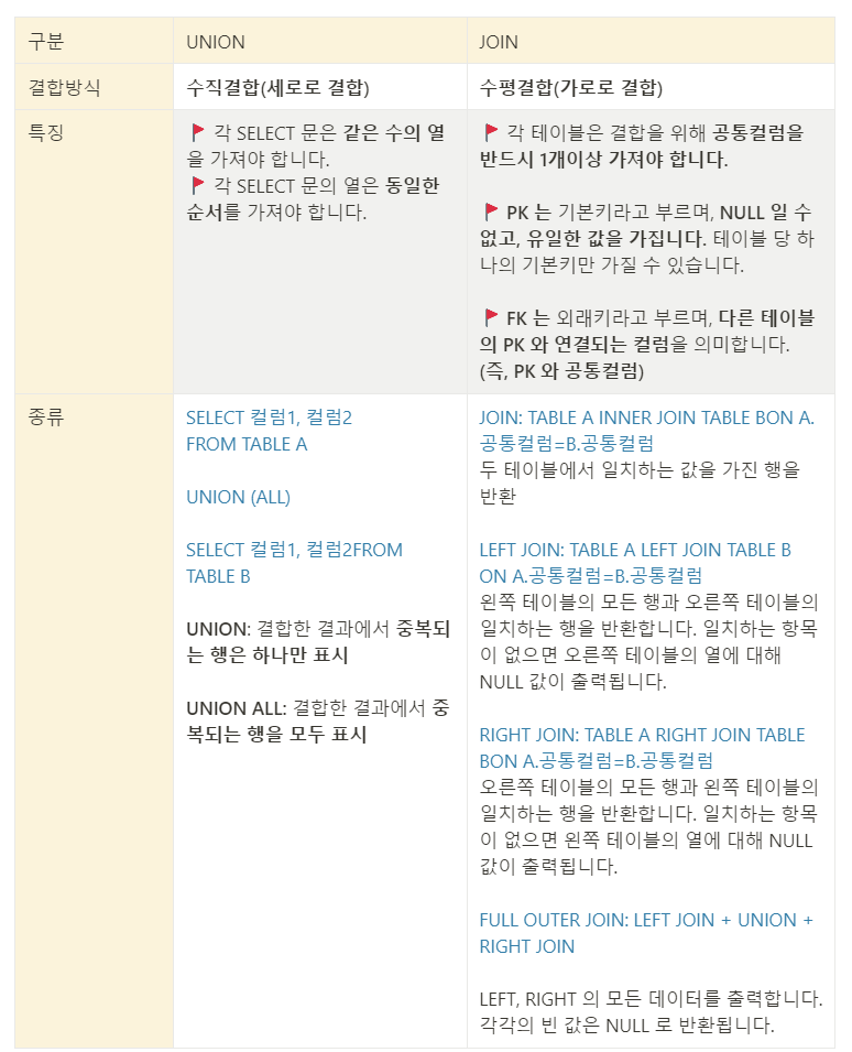 ๋ํ ๋ฐ๋๋ก ๊ณตํต์ปฌ๋ผ์ ๊ธฐ์ค์ผ๋ก JOIN ์ ํ๊ณ , ๊ฒฐํฉ๋ ๋ฐ์ดํฐ๋ฅผ ๊ฐ์ง๊ณ ์ด์ ๋ง์ถ๋ UNION ์ ํ ์ ์์ด์
